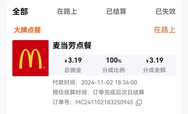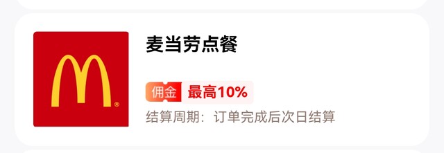 麦当劳10%佣金秒到账,点赞
