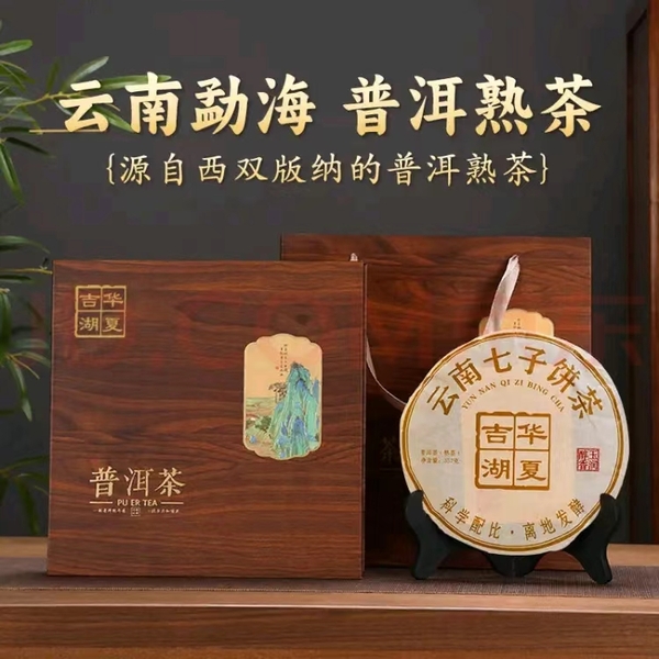 吉华湖夏茶叶礼盒装 普洱茶熟茶盒装357克